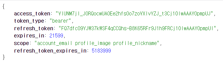 카카오 엑세스 토큰을 잘 받았음.