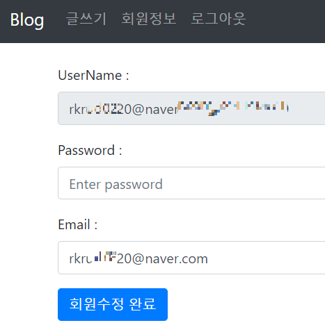 그러나 회원정보에서 password 수정이 가능하면 다시 카카오 로그인이 안된다.