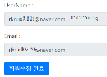 oauth값이 있으면(=카카오 유저라면) 패스워드 필드 없애고 이메일 필드도 수정못하게 readonly