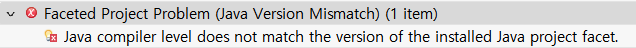 Java compiler level does not match the version of the installed Java project facet. [프로젝트명] Unknown Faceted Project Problem (Java Version Mismatch)