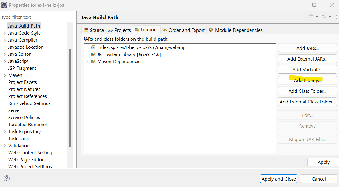 The superclass "javax.servlet.http.HttpServlet" was not found on the Java Build Path index.jsp /ex1-hello-jpa/src/main/webapp line 1 JSP Problem