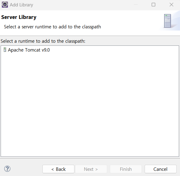 Server Runtime 클릭하고 tomcat 선택 > Apply