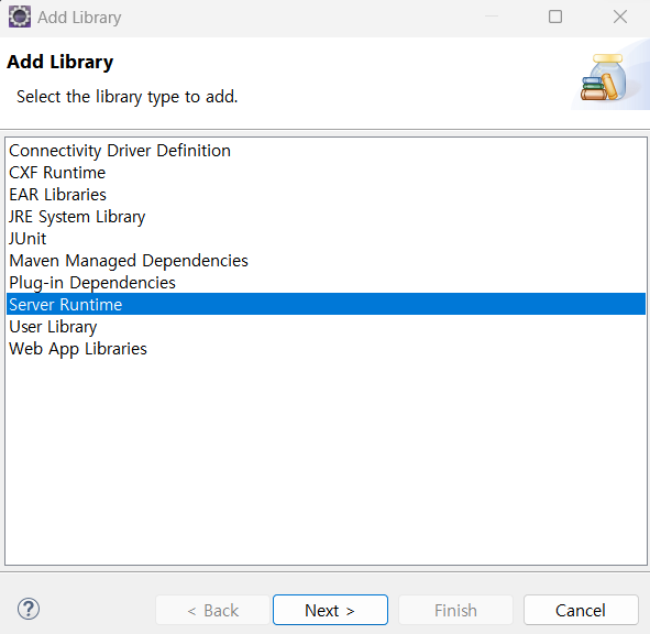 Java Build Path 에서 Add Library 클릭해서