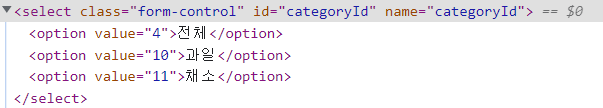 카테고리 옵션에 value 값을 줘야한다?