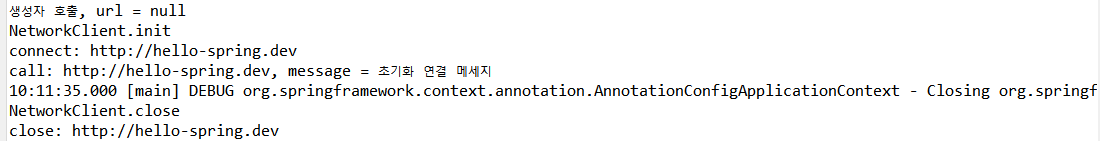 위의 NetworkClient 클래스 코드에서 초기화, 종료 메서드에 어노테이션만 추가하기