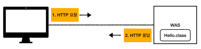 - 나의 서버인 웹 브라우저가 http://localhost:8080/hello url을 통해 WAS에게 HTTP 요청을 보낸다