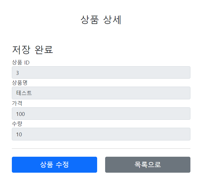 실제 상품을 등록하고 뷰 템플릿으로 호출하는게 아니라 상품 상세화면으로 리다이렉트를 하면된다.