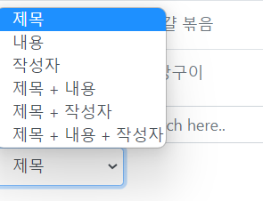 1. 검색버튼 눌렀을때 검색타입도 파라미터에 넘어가도록