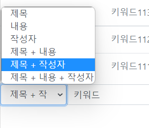 <option value="TW" th:selected="${pmk.criteria.type} == 'TW'">제목 + 작성자</option>