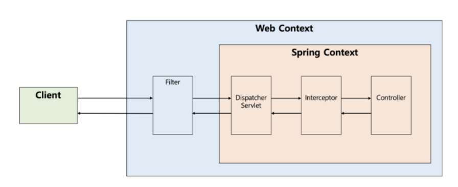 Interceptor : 특정 URI로 요청했을 때 컨트롤러로 가는 요청을 가로챔