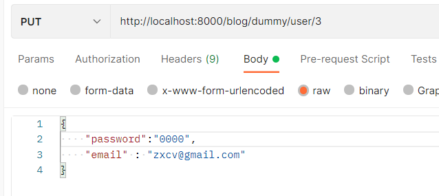 1번 id를 찾아서 password,email 과, username은 값을 강제로 넣어