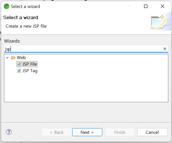 3. 해당 폴더 우클릭시 new - other 에 들어가면 jsp (또는 html,css ..) 가 나오는것을 확인할 수 있다.